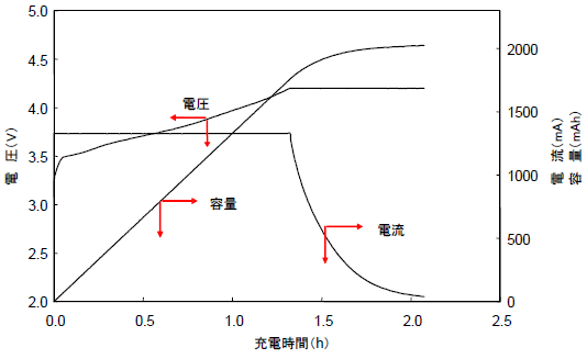 セルメーカーによっては、電解液に添加物を加え印加電圧が4.2Vを越えた時には添加物が急激な重合反応を起こしてイオンの流動性を阻止する技術を採用している例もあります。