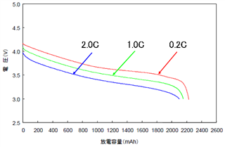 電池は充電電流、放電電流(レート)で特性が変化します。